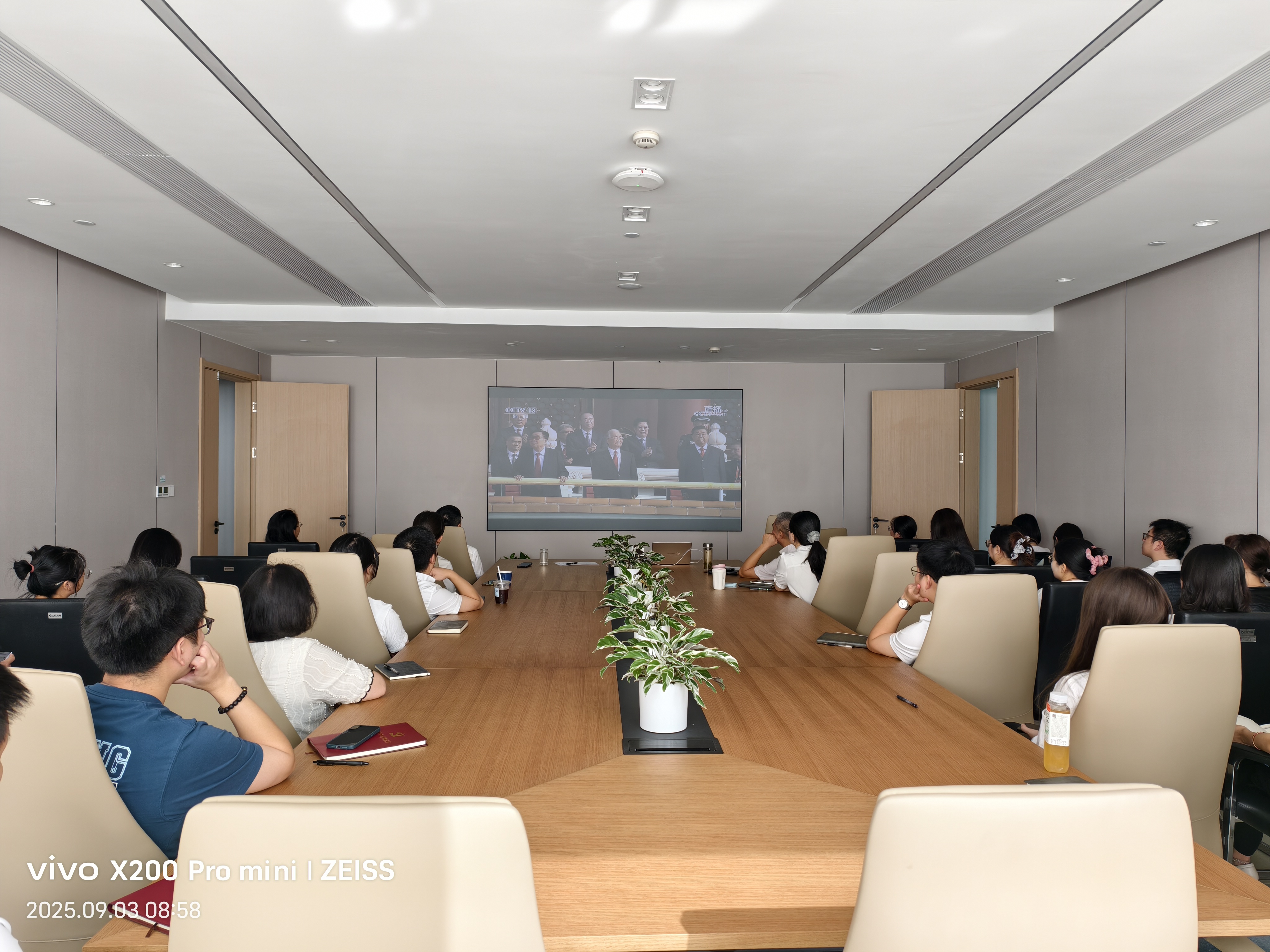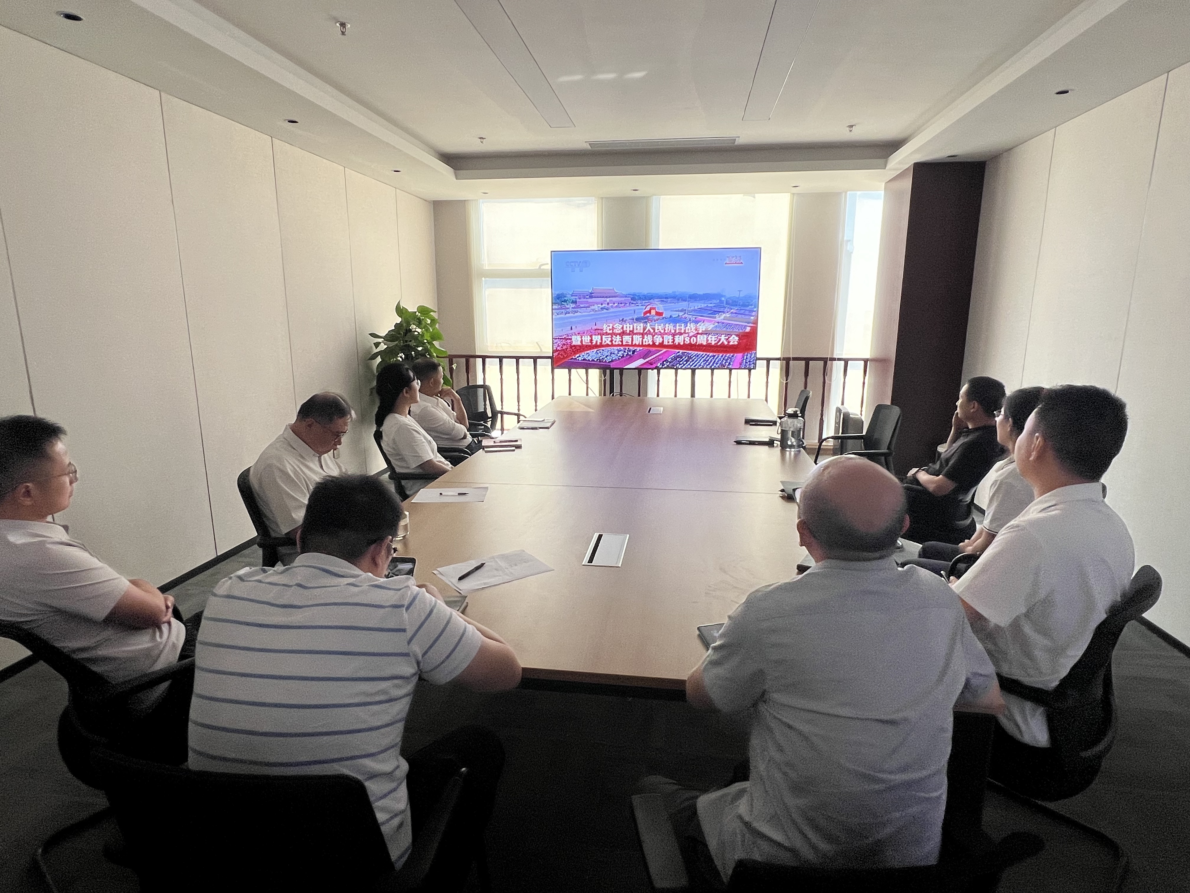 數(shù)旅集團(tuán)組織集團(tuán)業(yè)務(wù)事業(yè)部、研發(fā)管理中心、紫荊公司在36樓會(huì)議室觀看“紀(jì)念中國(guó)人民抗日戰(zhàn)爭(zhēng)暨世界反法西斯戰(zhàn)爭(zhēng)勝利80周年大會(huì)”專(zhuān)題節(jié)目