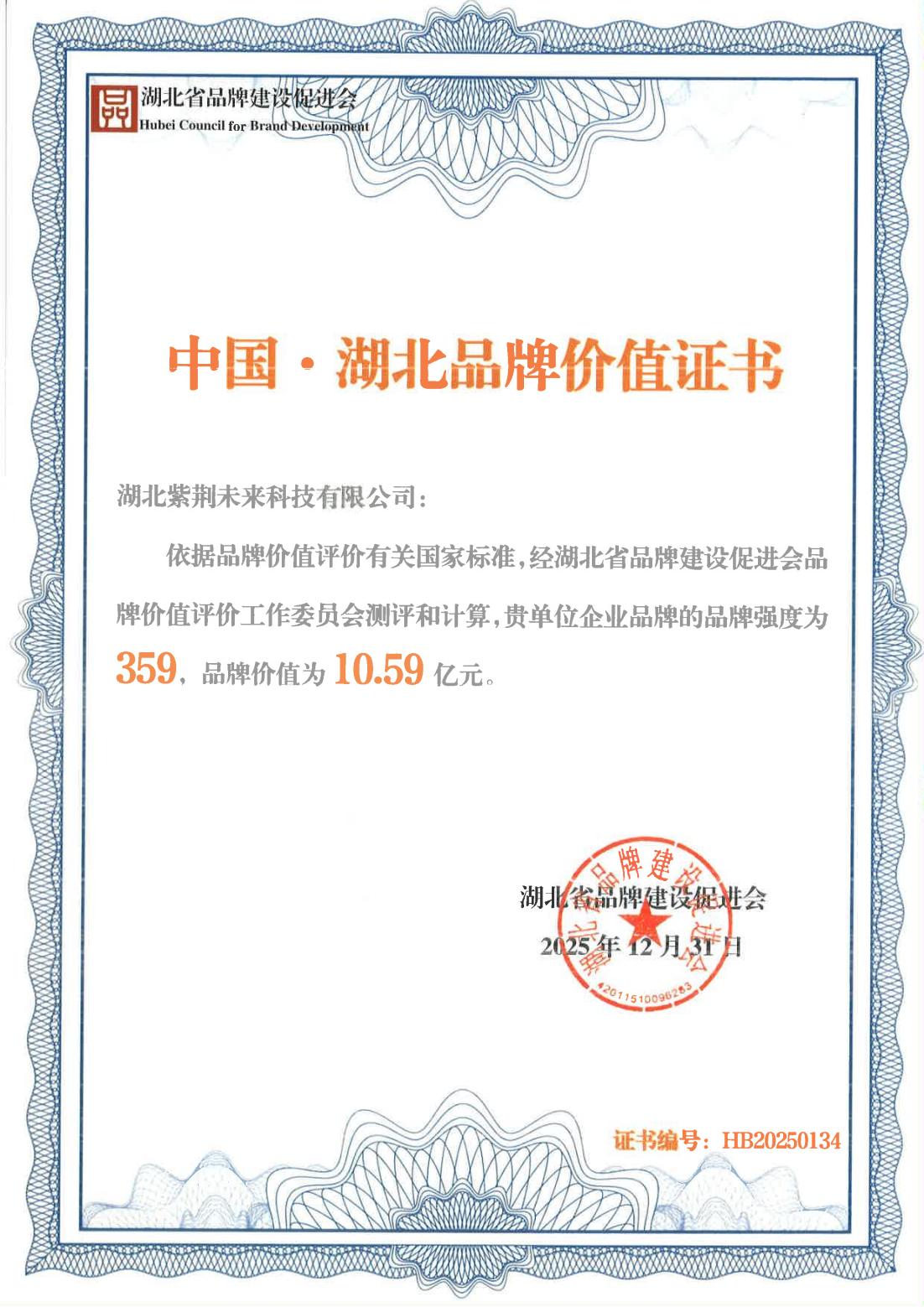 近日,由湖北省發(fā)展和改革委員會(huì)、湖北品牌推進(jìn)機(jī)制辦公室聯(lián)合主辦的2026年湖北品牌建設(shè)大會(huì)暨湖北品牌年度盛典在武漢召開。會(huì)上正式發(fā)布2025年湖北品牌價(jià)值評(píng)價(jià)結(jié)果,數(shù)旅集團(tuán)旗下紫荊未來公司以359的品牌強(qiáng)度獲“中國?湖北品牌價(jià)值證書”,品牌價(jià)值10.59億元。