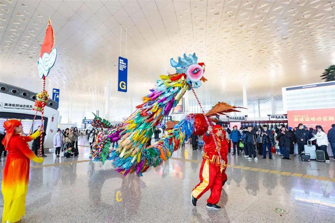 湖北省文旅游廳舉辦“迎龍年過(guò)大節(jié)非遺溫暖回家路”活動(dòng)。1月26日,“迎龍年過(guò)大節(jié)非遺溫暖回家路”首場(chǎng)主題活動(dòng)在武漢天河機(jī)場(chǎng)舉辦,潛江草把龍、舞獅、鄖陽(yáng)鳳凰燈舞等非遺節(jié)目在航站樓出發(fā)大廳精彩上演,湖北非遺傳承手藝人做糖畫(huà)、剪窗花、送福袋、寫(xiě)春聯(lián),讓旅客在旅途中感受濃濃的節(jié)日氛圍。該活動(dòng)于1月26日—2月1日每日10:00-15:00在天河機(jī)場(chǎng)T3航站樓出發(fā)(到達(dá))大廳舉辦,活動(dòng)由湖北省文化和旅游廳主辦,湖北省群眾藝術(shù)館(湖北省非物質(zhì)文化遺產(chǎn)保護(hù)中心)承辦。